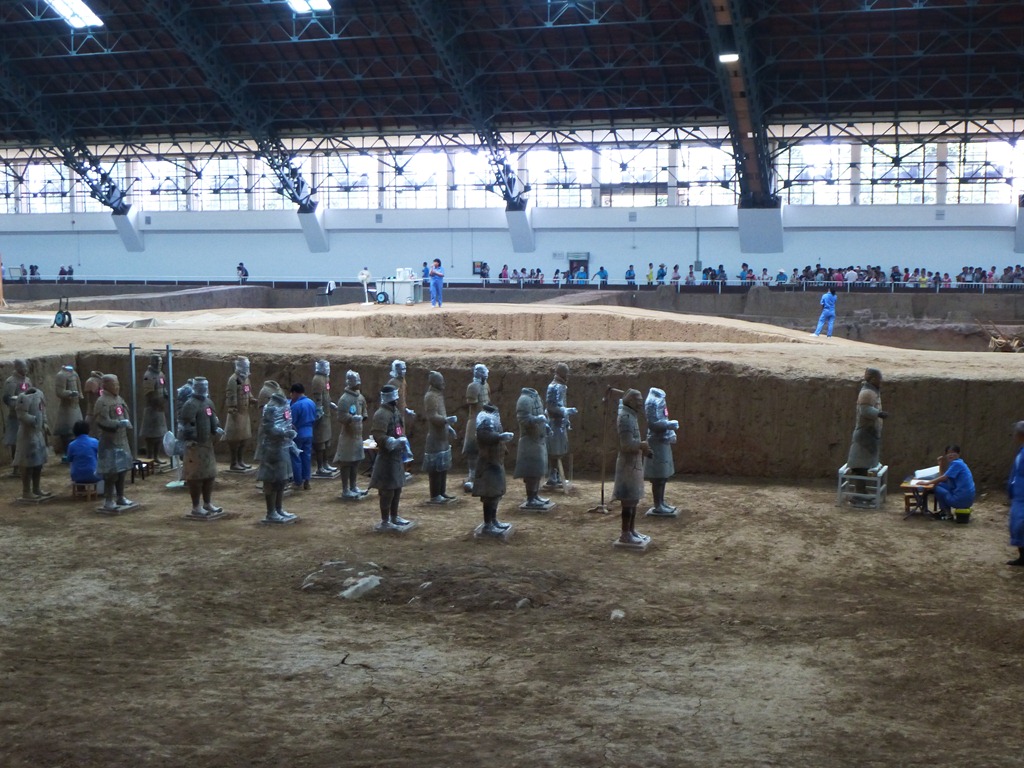 Entsprechend haben wir versucht, unser „anstrengendes Outdoor-Sightseeing“ – sprich unklimatisiert – auf zwei Tage zu beschränken: Wir waren am „Bund“ (alter Stadtteil am Fluss mit erhaltenen Gebäuden aus der Kolonialzeit; hervorragender Blick auf die Skyline des modernen Finanzbezirks Pudong), haben den Yangtze mit einer kitschigen „U-Bahn“ unterquert und sind zur höchsten Aussichtsplattform der Welt (492m; inklusive Glasboden) im 101 Stock des World Financial Centers gefahren, um den Sonnenuntergang und den Einbruch der Dunkelheit zu beobachten. Den zweiten Tag haben wir genutzt, um den Yu Garten und den Volksplatz zu besichtigen und in den kleinen Läden (verkaufen bspw. lustige Nagelknipser, Handy-Schmuck, gefälschte Pässe und Führerscheine und natürlich jede Menge „original“ Markenkleidung, welche mit Hilfe von Schaufensterpuppen mit riesigen Augen feilgeboten werden, etc.) eines riesigen „Untergrund-Einkaufszentrums“ in der grössten U-Bahn-Station (es treffen zwar „nur“ drei Linien aufeinander, aber irgendwie haben es die Stadtplaner geschafft, die Ausdehnung der Station so gigantisch zu gestalten, dass locker 10 Linien hier zusammentreffen könnten) geschmökert.