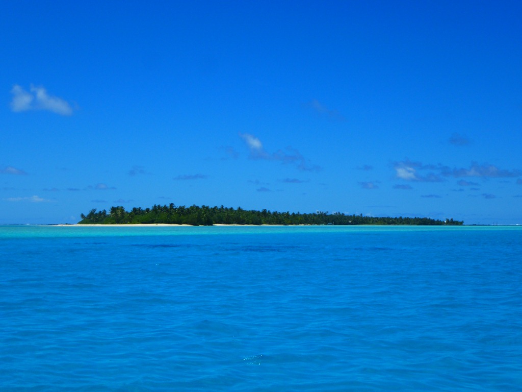 Blick auf die Hauptinsel in der Mitte Blick auf das Motu