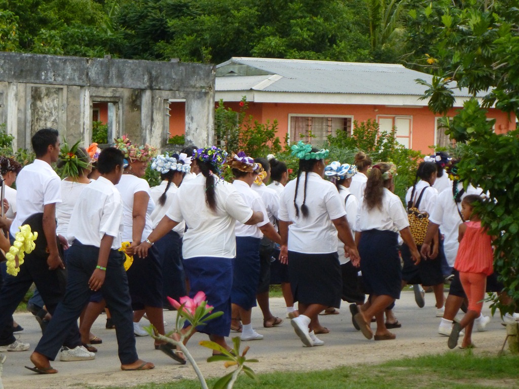 Dorfmarsch in die Kirche Verstorbene Familienmitglieder im Garten