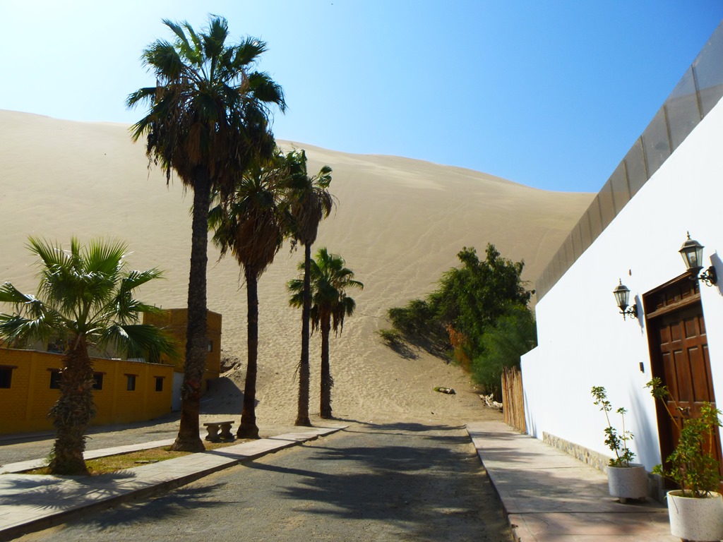 Die – hoffentlich – letzte lange Busfahrt unserer Weltreise führte uns von Cusco in das ersehnte Tiefland, nach Huacachina. Dass wir dabei die teuerste Luxusklasse im Bus gebucht haben (inkl. “eigenem” Fernseher und WLAN), konnte nicht wesentlich über die katastrophalen Strassenverhältnisse mit so zahlreichen Kurven, dass selbst bei eingefleischten Busveteranen beim Anblick der servierten Mahlzeiten ein Brechreiz geweckt wurde, hinwegtäuschen. Zwar noch mit vollständigem Mageninhalt, dafür aber völlig entkräftet sind wir in der kleinen “Touri-Oase” Huacachina angekommen. Und obwohl “Oase” hier wörtlich zu nehmen ist – die Ortschaft ist umringt von gewaltigen Sanddünen – findet man hier definitiv keine Ruhe: bestehend aus billigen Hostels, Restaurants und Bars, zieht das Fleckchen vor allem junge, partywütige Singles aus der ganzen Welt an: Sex, Drugs & Techno in der Wüste… Der einzige Weg, dem Rummel kurzzeitig zu entfliehen, besteht darin, auf selbstgebauten Buggies mit halsbrecherischem Tempo durch die Dünen zu rasen und ab und zu eine ebensolche selbst mit dem Snowboard herunterzufahren. Einfach keine Kurven machen, ist seeeeehhhr ungesund…