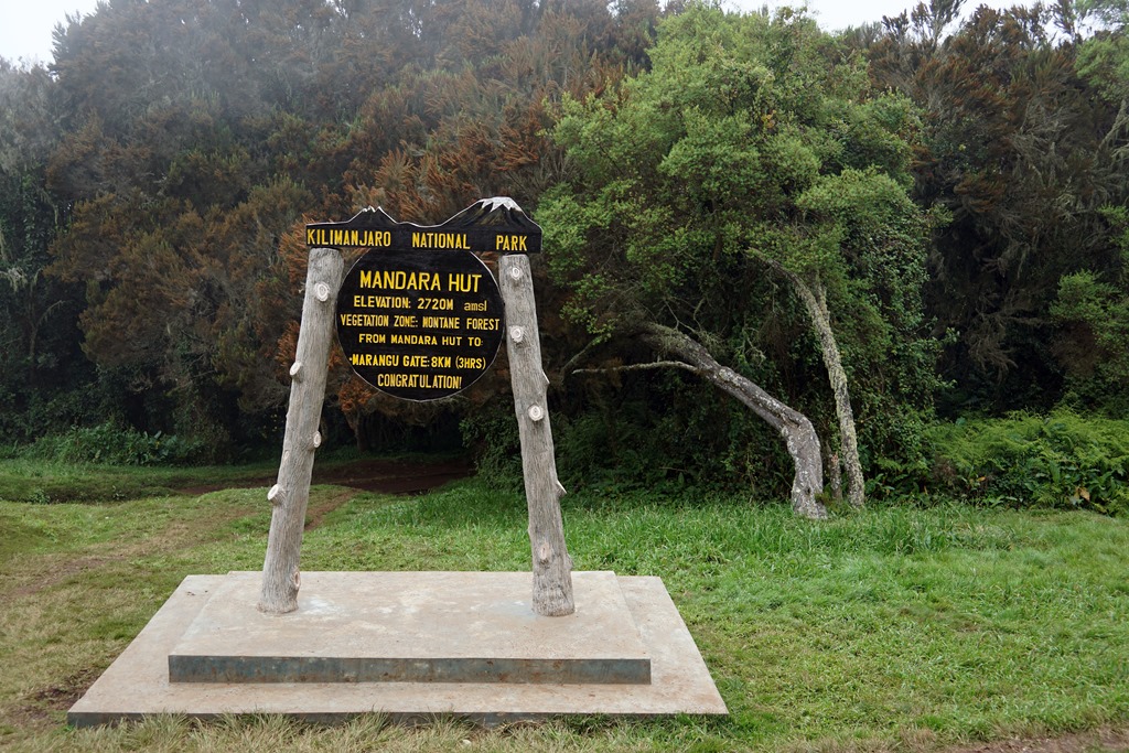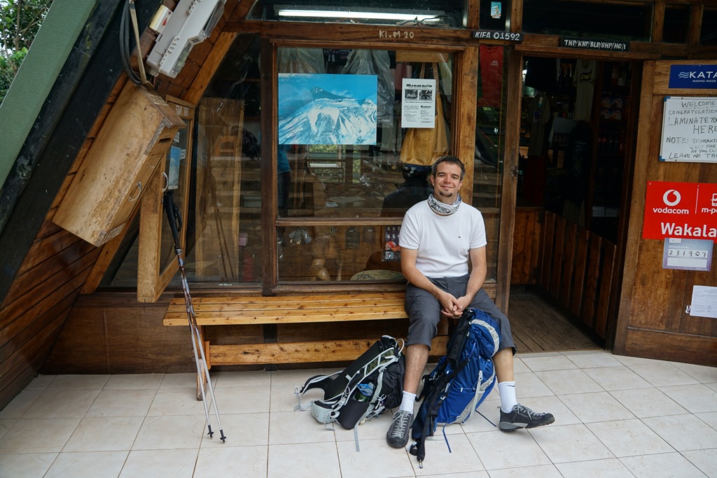 Nach zwei Nächten in Moshi, einem umfassenden Briefing durch den Reiseveranstalter und dem letzten Check unserer Ausrüstung ging es dann aber endlich los: wir wurden in Moshi (ca. 800m ü.M.) abgeholt und zum Dorf „Marangu“ an den unteren Ausläufern des Kilimanjaro gefahren (1840m ü.M.). Dort registriert man sich bei der Nationalparkleitung und wartet auf seine Lizenzen. Ausserdem wird das mitgebrachte Gepäck gewogen und auf eine angemessene Anzahl an Trägern verteilt (wir hatten das Gefühl, dass dabei etwas getrickst und uns zwei Personen mehr „untergejubelt“ wurden). Abschliessend werden einem die Guides (pro Person einer), der Koch und der „Kellner“ (besserer Träger, welcher auch serviert) vorgestellt. Die „unwichtigeren“ Personen, d.h. die Träger (bei uns sechs Stück), bleiben namentlich unerwähnt, wenn man nicht explizit auf einer Vorstellung beharrt.