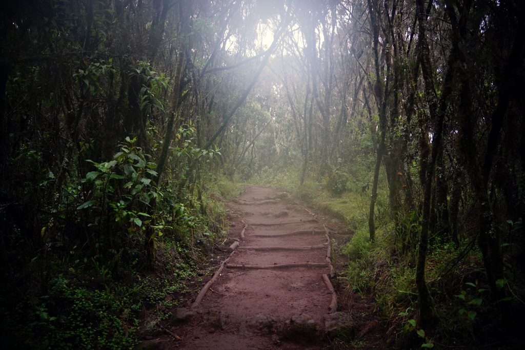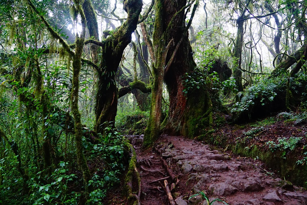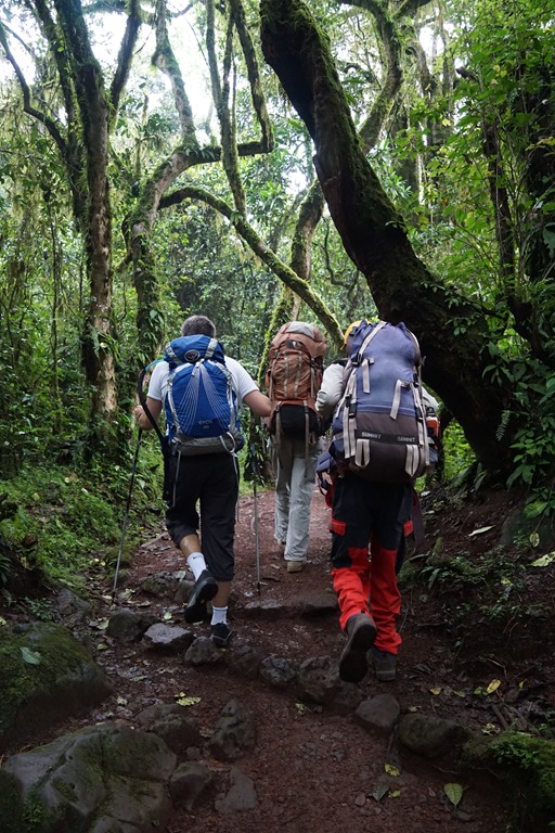 Die Etappe des ersten Tages bis zur „Mandara Hütte“ auf 2720m ü.M. ist ca. 6 km lang und nimmt gute drei Stunden in Anspruch. Entsprechend steil ist der Weg durch den Regen- & Nebelwald manchmal, ansonsten ist er aber völlig unproblematisch und von zahlreichen exotischen Pflanzen gesäumt. Wenn man Glück hat, sieht man hier auch verschiedene Typen an Affen.