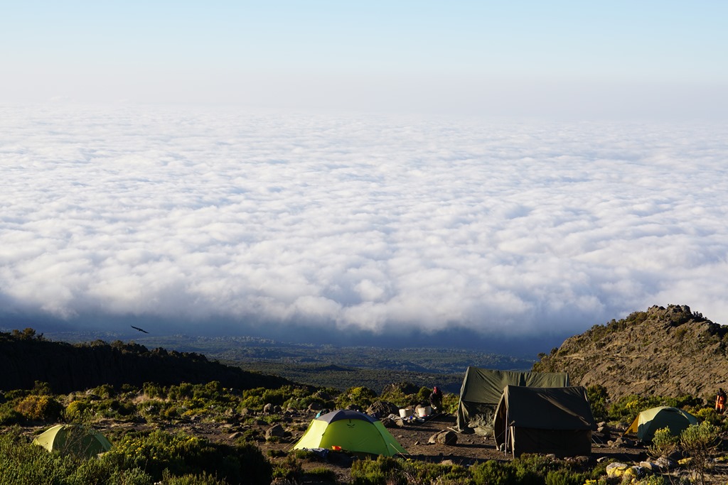 Nach einer Nacht im Tiefschlaf folgt vor dem Abstieg am nächsten Morgen noch die übliche Trinkgeldzeremonie: da das Personal des Kili-Trekkings oft sehr schlecht bezahlt ist (Träger erhalten i.d.R. gar keinen Lohn), ist es überlebenswichtig, rund 20% der Besteigungskosten zusätzlich in Form von Trinkgeldern zu verteilen (USD 130 für den Guide, je USD 70 für Assistant Guide und Koch, USD 55 für den Kellner und je USD 45 für die Träger). Die Leute danken es einem mit einem traditionellen Tänzchen, bevor der Abstieg zum Ausgang in Angriff genommen wird.