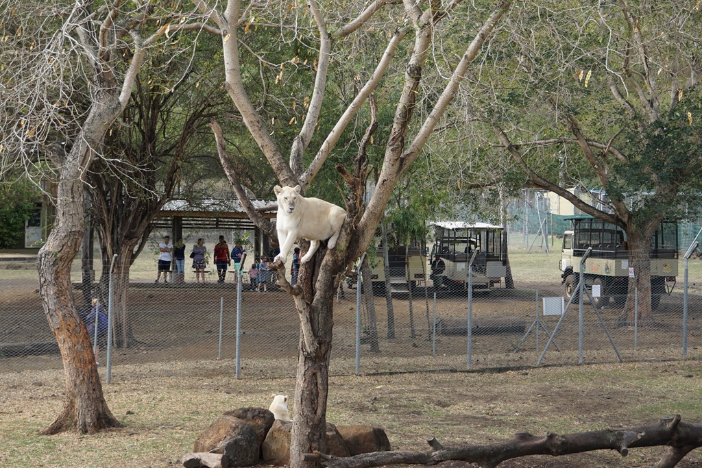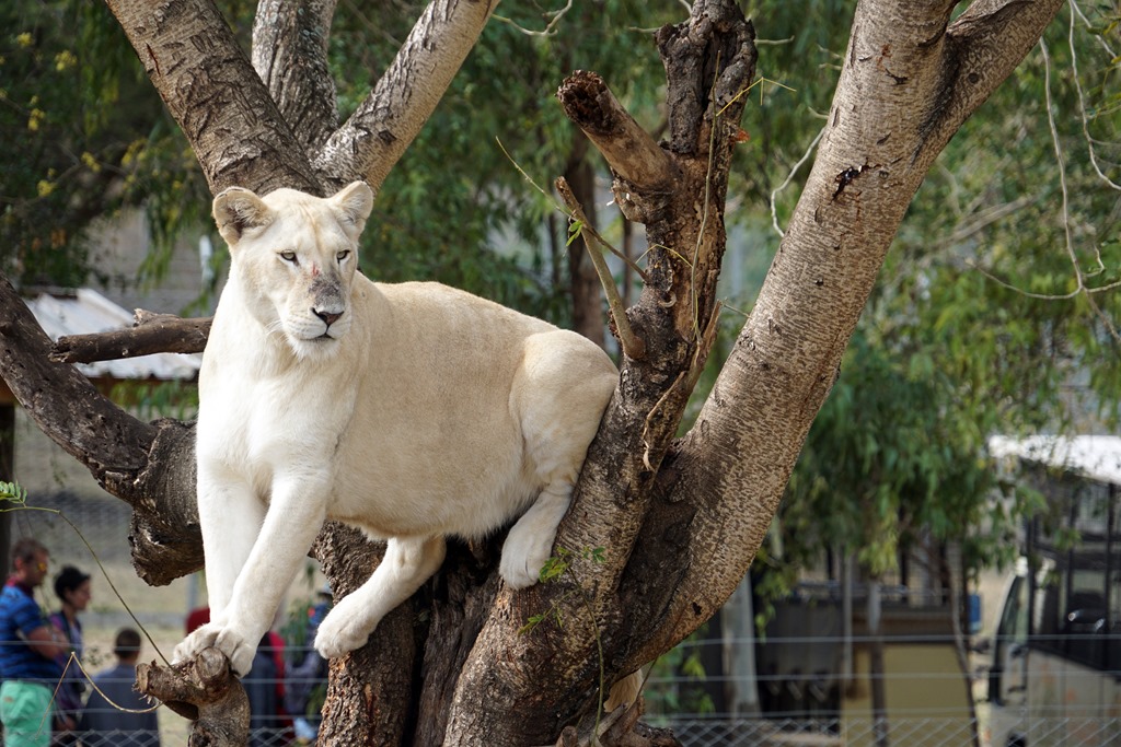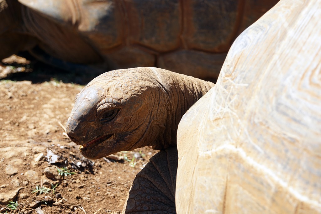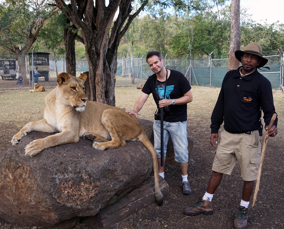 Die erste Woche auf der Insel haben wir im Norden verbracht. Dieser gilt als ursprünglicher und rauer als der Süden und als weniger touristisch. Da es ziemlich windig war und man ja nicht jeden Tag nur am Strand liegen oder kitesurfen kann, haben wir die – teilweise auch etwas regnerischen Tage – dazu genutzt, die Insel mit unserem Mietwagen zu erkunden. Der erste Ausflug führte uns dabei in den „Casela-Abenteuerpark“. Was nach Achterbahnfahren und Zuckerwatte essen klingt, ist in Realität eigentlich ein besserer Zoo, wobei wir zugeben müssen, dass die Anlage sehr schön angelegt ist und einige Attraktionen in dieser Form bei uns nicht denkbar – oder überlebensfähig – wären: durch die Volieren der tropischen Vogelarten kann man selbst hindurchspazieren, die uralten Riesenschildkröten liegen, fressen oder stehen an jeder Ecke einfach so herum und Zebras, Antilopen, Strausse, Giraffen und auch den Nashörnern stattet man per offenem LKW ganz Safari-like einen Besuch ab. Das Highlight und der Hauptgrund für unseren Besuch war aber das Versprechen auf ein ganz anderes, ziemlich ausgefallenes Erlebnis: im Abenteuerpark kann man Löwen streicheln. Und ja, es handelt sich um voll ausgewachsene Exemplare, welche weder unter Narkose stehen, noch sonst wie ruhig gestellt werden: man wird beim Eingang des Geheges von den Tierpflegern, Dompteuren oder wie auch immer man die mutigen Männer nennen möchte abgeholt, mit einem langen Stock ausgestattet, muss eine Verzichtserklärung unterzeichnen (der Park haftet weder für Verletzungen noch Todesfälle) und alles bis auf die Kamera und den Stock draussen lassen. Anschliessend begibt man sich in der Gruppe ins Gehege, wo sich sechs ausgewachsene Löwen (ein Männchen, fünf Weibchen) im Alter von 2-3 Jahren tummeln. Während man sich in der Nähe eines Exemplars möglichst fotogen in Pose wirft (war gar nicht so einfach, wenn 150 Kilo Muskelmasse neben einem liegen), spricht der „Haupt-Dompteur“ mit dominanter Stimme beruhigend auf das Tier ein. Die restlichen Bewacher halten das übrige Rudel im Überblick. Das Ganze funktioniert übrigens nur, weil die Löwen nach der Geburt täglich in engstem Kontakt mit ihren Betreuern stehen und diese kennen. Da die Wärter die Gehege nur mit Stöcken betreten, ist der stockausgestattete Tourist für die Löwen auf den ersten Blick nicht als solcher erkennbar und fällt darum nicht unbedingt in die Kategorie „Fressen“. Fazit: wir haben alle überlebt und Löwe fühlt sich an wie struppiger Hund.