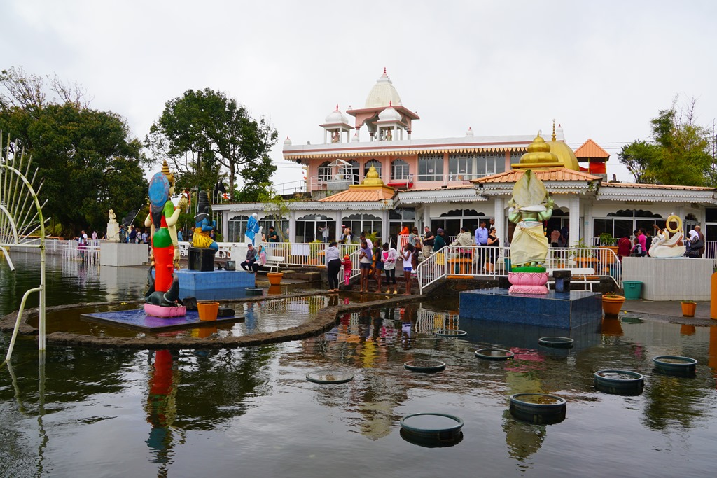 Ganga Talao, unser nächstes Ausflugsziel, ist zwar nicht ganz so adrenalinfördernd, deshalb aber nicht minder speziell: ausgewanderte Hindus haben im Hochland von Mauritius eine riesige hinduistische Tempelanlage rund um einen See angelegt. Die inzwischen imposante Ansammlung an Statuen hinduistischer Gottheiten entstand über die Jahrzehnte durch Spenden von Familien aus anderen Ländern. Der wichtigste Clou aus Sicht des Hindus (für uns eher als „Umweltverschmutzung“ zu bezeichnen): das Seewasser des Ganga Talao stammt teilweise aus dem heiligen (und übelst verdrecktem) Fluss Ganges und wurde eigens importiert. Guten Appetit, liebe Götter 🙂