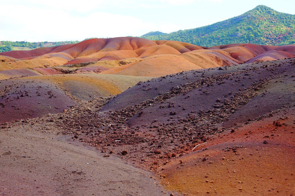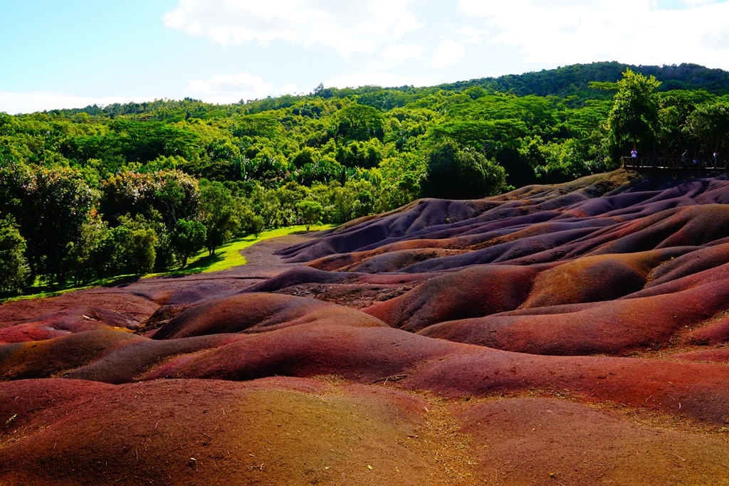 Da kam die nächste Attraktion genau richtig: die „Seven Coloured Earth“. Dabei handelt es sich um eine Sehenswürdigkeit geologischen Ursprungs. Das Vulkangestein, aus welchem die gesamte Insel besteht, wurde durch den vielen tropischen Regen freigelegt und anschliessend alle wasserlöslichen Bestandteile ausgewaschen, so dass nur Eisen- und Aluminiumoxide zurückblieben, welche die unterschiedlichsten Rot- und Violetttöne aufweisen.