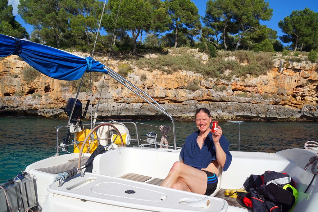 Was im Vergleich zum letzten Törn auf den Kanaren doch schockierend anders war, war das Preisniveau für Anlegeplätze im Hafen: Teneriffa, etc. um Weihnachten (!!!): durchschnittlich 30 bis 35 Euro; Mallorca / Menorca im Frühling, kurz vor Saisonbeginn: 80 bis 130 Euro! Entsprechend kam es allen sehr gelegen, dass die beiden Inseln viele wunderschöne Buchten haben, in welchen kostenloses Ankern erlaubt ist. Wir haben uns deshalb auf drei Übernachtungen in Häfen beschränkt und stattdessen viermal in traumhaften Buchten geankert, was nicht nur klare Sternenbeobachtung in der Nacht ermöglichte, sondern auch zum einen oder anderen witzigen und unvorhergesehenen Ereignis führte, so z.B. dem Ertappen eines Pärchens inflagranti, welches sich frühmorgens vermeintlich unbeobachtet leidenschaftlich am Strand paarte
