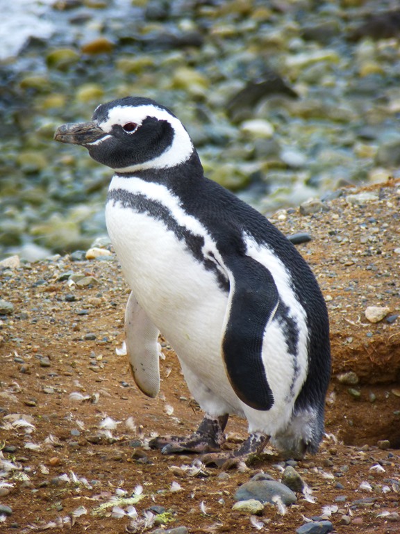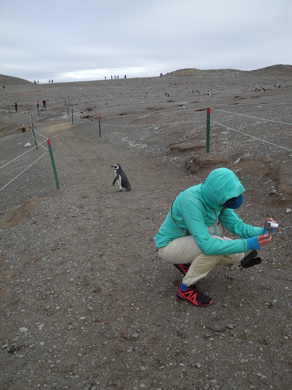 Punta Arenas selbst ist ein ganz cooles Städtchen und dies nicht nur in Bezug auf die Temperaturen: ein kleines, idyllisches Örtchen mit Häusern aus Holz und freundlichen aber eher zurückhaltenden Menschen und die beste heisse Schokolade der Welt. Und natürlich bietet die Stadt auch eine Sehenswürdigkeit, für die es sich lohnt, eine Reise an den Hintern unseres Globus zu machen: die Isla Magdalena, Sommerresidenz (ja, es ist momentan Sommer hier unten!) von angeblich 120’000 Magellan-Pinguinen. Ob es tatsächlich auch so viele waren oder ob wir um einen Teil unseres Eintrittsgeldes betrogen worden sind, wissen wir nicht. Aber es waren auf jeden Fall sehr, sehr viele Pinguine. Das Ganze schaut man sich im Rahmen einer geführten Bootstour an, welche aufgrund von starkem Wellengang in der Magellan-Strasse aber nur bei schönem Wetter stattfinden kann. Hat man – so wie wir – Glück mit dem Wetter, wird man für eine Stunde auf der Insel abgeladen und kann dort entlang von abgesperrten Gehwegen über die Insel flanieren und die Pinguine beobachten, welche rundherum ihre Nester haben. Einige wagemutige Exemplare getrauen sich sogar in die Nähe der Menschen und geben so noch viel bessere Fotomotive ab. Allerdings war keiner mutig genug, um sich “dem grossen Nicola” entgegenzustellen