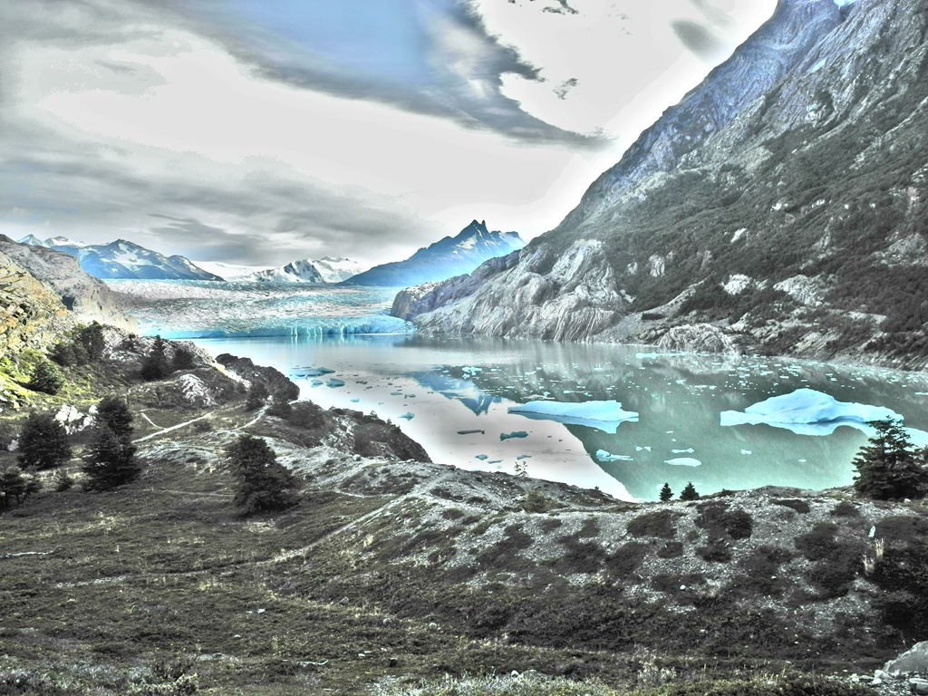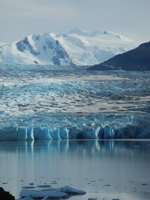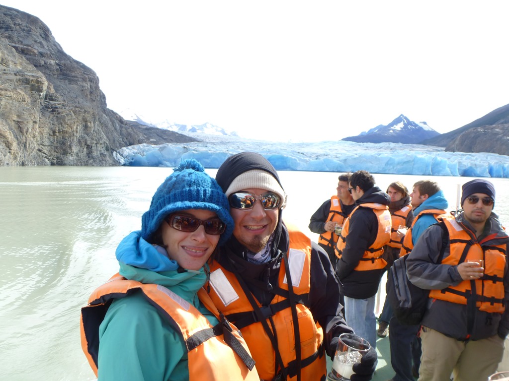 Die viertägige Wanderung selbst war dank der guten Vorbereitung und dem unwahrscheinlichen Wetterglück, welches wir hatten – in vier Tagen gab es keinen Tropfen Regen! – zwar anstrengend (die Wege verlaufen eigentlich nie eben, weshalb man während den gesamten gut 50 Kilometern immer hoch und wieder runter marschiert, plus hatten wir die Campingausrüstung im Rucksack) aber auch schön, wobei uns – neben den abwechslungsreichen Wegen selbst, welche über zahllose Flüsse und halsbrecherische Brücken führen – insbesondere die Torres selbst (sehr markante und frei stehende “Felstürme”, welche bis auf 2’500 Meter aufragen), sowie der “Glaciar Grey” gefallen haben. Letzterer ist ein gewaltiger Gletscher, dessen Abbruchstelle in einem grösseren See liegt, wodurch man mit einer Bootstour ganz nahe heranfahren und die beeindruckenden blauen Eismassen (sind blau, weil der Sauerstoff im Eis über die Jahrhunderte komplett herausgepresst wurde) aus nächster Nähe bewundern kann. Für das besondere Erlebnis sorgt dabei zusätzlich die Schiffscrew, welche einem im richtigen Moment einen Pisco Sour mit herausgebrochenem Eis serviert (chilenischer Longdrink, bestehend aus Pisco – einem chilenischen Schnaps –, Limettensaft, Eiweiss und Zucker). Da insbesondere der mittlere Abschnitt des “W” Schweizer Bergtälern sehr stark ähnelt, haben wir dort die Strecke etwas abgekürzt und somit wohl eher das grosse “U” gewandert