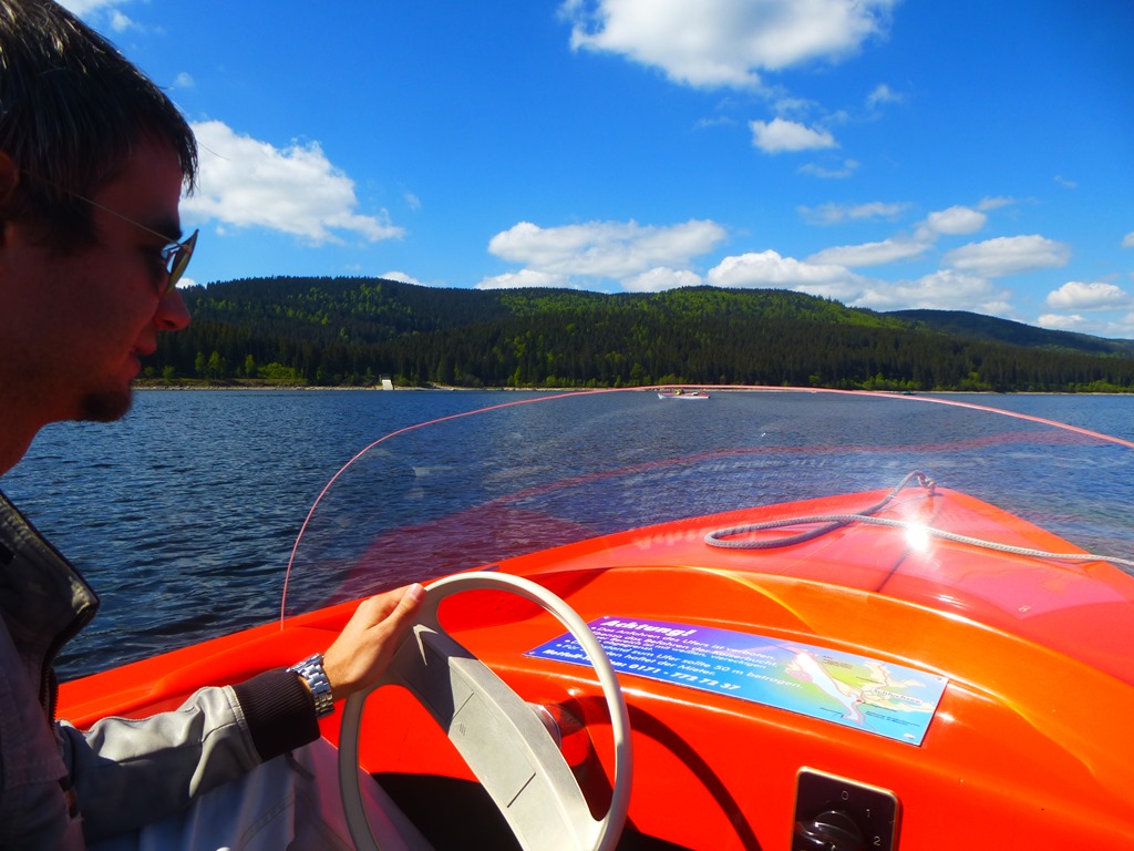 Möchte man lieber in der unmittelbaren Gegend um den Schluchsee bleiben, gibt es auch dort zahlreiche Outdoor-Aktivitäten neben und auf dem Wasser. Ein Highlight bei den letzteren ist zweifellos die Miete eines Bötchens mit Elektromotor (auf dem Schluchsee sind Benzinmotoren verboten)! Mit diesen cruist man dann ganz gemütlich von Strand zu Strand. Und wenn man dann noch nicht genug hat, kann man auf einem „Zipfel-Bob“ (hehe; ein Schlitten mit „Joystick“ oder eben Zipfel) wagemutig den Berg bzw. die Wiese herunterbrausen.