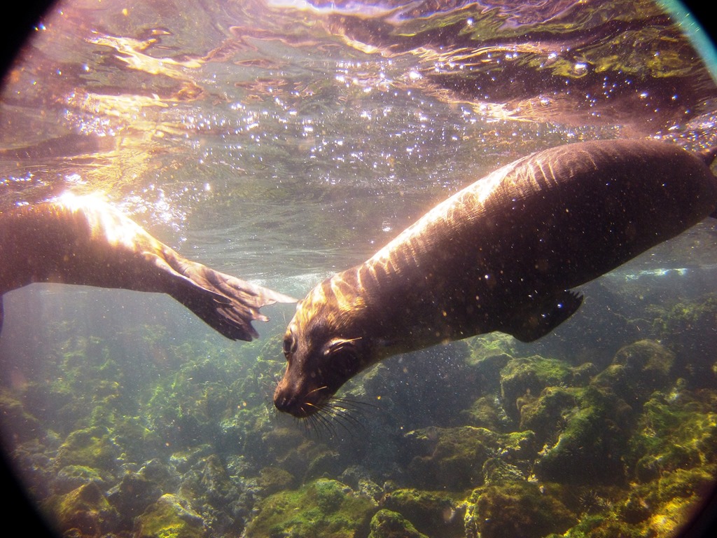 Dieser Eindruck hat sich auch an unserem zweiten Tag noch verstärkt, als wir eine 9-stündige Schnorcheltour rund um San Crisotbal gebucht haben, bei welcher wir im Rahmen der drei (eisig kalten) Schnorchel-Stopps zahlreiche Meeresschildkröten, Seelöwen (insbesondere die jungen Exemplare sind sehr verspielt und lieben es, mit den Touristen im Wasser Schabernack zu treiben), Adlerrochen, Galapagos-Haie und sogar zwei seltene Hammerhaie sahen! Einfach nur sensationell!