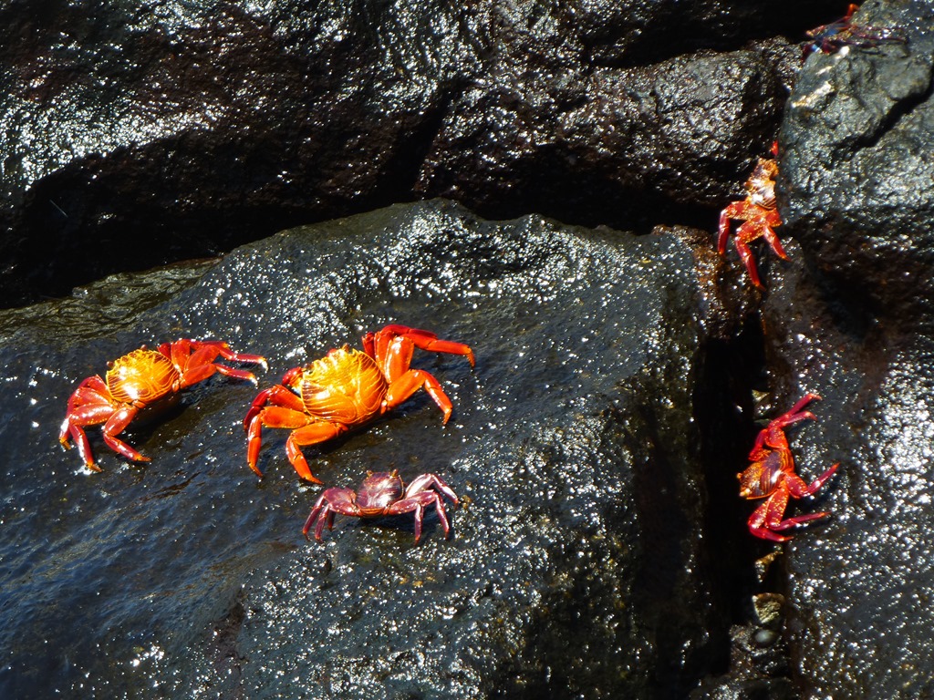 Auch wir haben Galapagos mit einer Kombi aus Hostel und Tagestouren bereist und schon während der Gratisführung unseres amerikanischen Hostelbesitzers in Santa Cruz, bei welcher man am Fischerhafen praktisch schon über schwarze Meer-Iguanas (Leguane, welche aussehen, als wären sie direkt der Urzeit entsprungen), knallrote Krebse, Pelikane und Seelöwen stolpert, welche sich vor den Marktständen sonnen oder auf eine Gelegenheit warten, einen Fisch von der Theke zu stibitzen, wurde uns klar, dass Galapagos definitiv eine Reise wert ist!