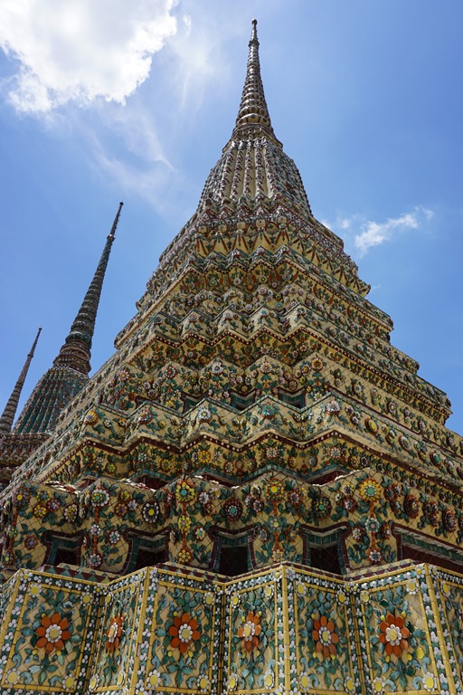 Dank unmittelbarer Nähe zur BTS sollte die Erkundung der Megacity auf eigene Faust leichtfallen – dachten wir zumindest… Leider hat uns dabei das unlogische Verkehrssystem von Bangkok einen Strich durch die Rechnung gemacht: neben dem Strassenverkehr, dessen Teilnehmer 24 Stunden am Tag im Stau stehen, gibt es die BTS, die südlichen Metrolinien, die nördliche Metro und die Busse, wobei alle Transportmöglichkeiten von einer anderen Gesellschaft betrieben werden, so dass Umsteigen, Tarifsystem, etc. sehr mühsam und intransparent sind. Da Bangkok an den Ufern von zwei grossen Flüssen liegt, werden die ganzen klassischen Transportmittel durch Boote ergänzt, welche regelmässig zwischen fixen Stationen verkehren. Weil die Sehenswürdigkeiten, welche wir anschauen wollten, alle besser per Schiff zu erreichen sind, waren wir auch regelmässige Nutzer dieser Kähne. Damit haben wir den Wat Poh – bekannt für seinen gewaltigen liegenden Buddha – und den Wat Arun besucht, wobei uns insbesondere an den ersten Tagen die Hitze verbunden mit der hohen Luftfeuchtigkeit schon noch etwas Probleme bereitet hat.