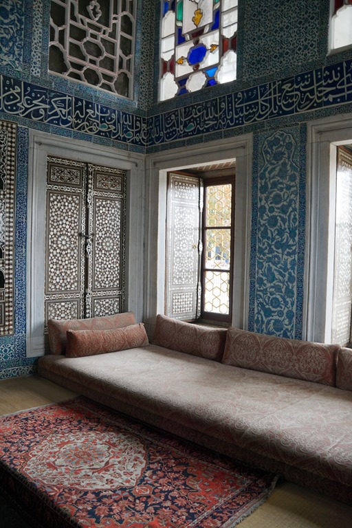 Der Topkapi-Palast, schwer bewacht hinter roten Rosen, war jahrelang Wohn- und Regierungssitz des Sultans, sowie das Verwaltungszentrum des osmanischen Reichs