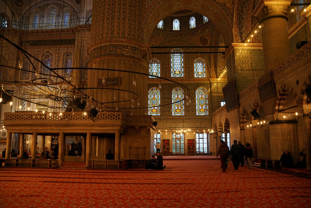 Sultan Ahmed (blaue Moschee) ist die Hauptmoschee in Istanbul und klassisch ausgerüstet mit Gebetsteppichen (inkl. dazugehörigem Fussgeruch